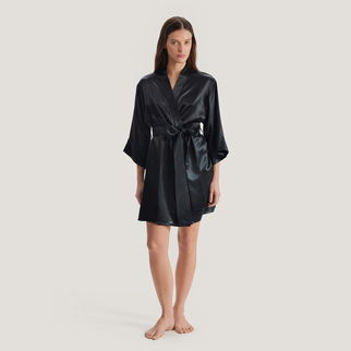 Шёлковый халат-кимоно короткий глубокий черный